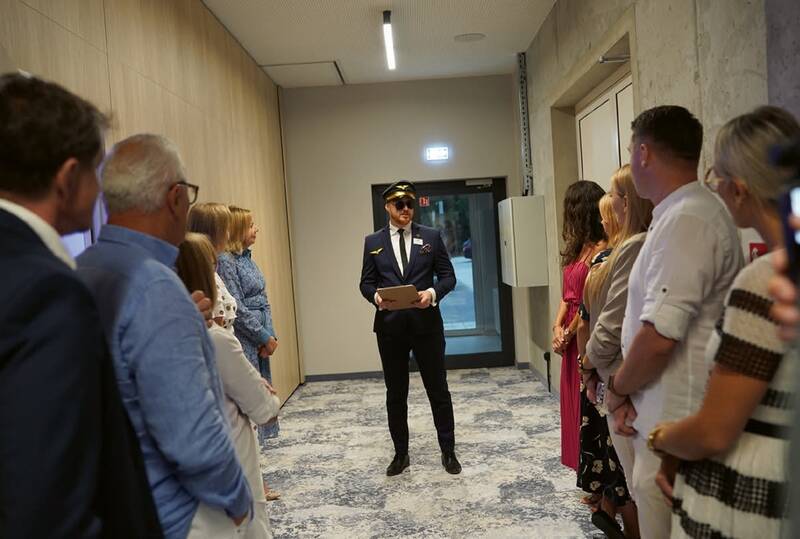Inauguracja odbyła się w klimacie lotniczym – pracownicy hotelu wcielili się w role stewardess, stewardów i pilotów, witając gości z elegancją i uśmiechem, niczym załoga pokładowa. Cała oprawa wizualna i scenariusz wydarzenia nawiązywały do podróży lotniczych – od symbolicznej „odprawy pasażerów”, aż po uroczyste przecięcie wstęgi, którego dokonali prezes Grupy Arche Władysław Grochowski oraz inwestor projektu Konstanty Strus.