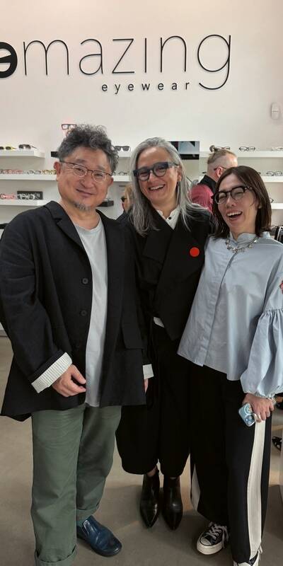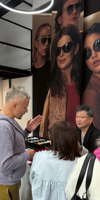 Weronika Rokicka: Od tego czasu to marzenie kiełkowało. W 2019 roku pojechałam pierwszy raz na targi optyczne do Paryża, na których Pan Yoshinori został już siódmy raz nominowany do najważniejszej nagrody Best Designer, a dwa razy wygrał w tej kategorii. Jest to nagroda niczym Oscar w świecie optycznej sztuki. W tym roku został ponownie nominowany ze swoją pracą z autorskiej kolekcji Yoshinori Aoyama. Wcześniej były to projekty Factory 900. W międzyczasie znów byliśmy w Japonii, odwiedzić ich zakład rzemieślniczy. Widzieliśmy, jak wyglądają maszyny, jak to wszystko powstaje, poznaliśmy cały zespół. Ojciec Pana Yoshinoriego, który ma 87 lat, wciąż z nimi pracuje w tym zakładzie, co jest niesamowite. Powtarzaliśmy im już od kilku lat, że jeśli nadarzy się okazja, aby przed lub po wyjeździe do Paryża, odwiedzili nas w Polsce, to będzie to dla nas ogromny zaszczyt. W tym roku w końcu udało się to zorganizować.