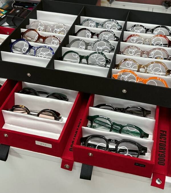 Yoshinori Aoyama: Jako Factory 900 na początku zawsze produkowaliśmy acetatowe oprawki do okularów. Projektowaliśmy kiedyś oprawki na zlecenie dla prestiżowych marek takich jak Yves Saint Laurent. Mój ojciec jest inżynierem i opracował mechanizm konstrukcji manufaktury okularów. Wtedy założył firmę Factory 900. Wcześniej zawsze produkowaliśmy oprawki z tworzywa, ale teraz produkujemy też oprawki tytanowe, a nawet realizujemy zamówienia na wykonanie oprawek z czystego złota. Mój ojciec jest prawdziwym geniuszem inżynierii, opracował nowe urządzenie wyłącznie do produkcji okularów. Chciał jak najlepiej wykorzystać techniki produkcji okularów, aby w Factory 900 móc zaprojektować coś naprawdę szalonego i wyjątkowego. Mamy własne patenty rodzinne. To zostało wysoko ocenione przez naszych klientów i branżę optyczną.