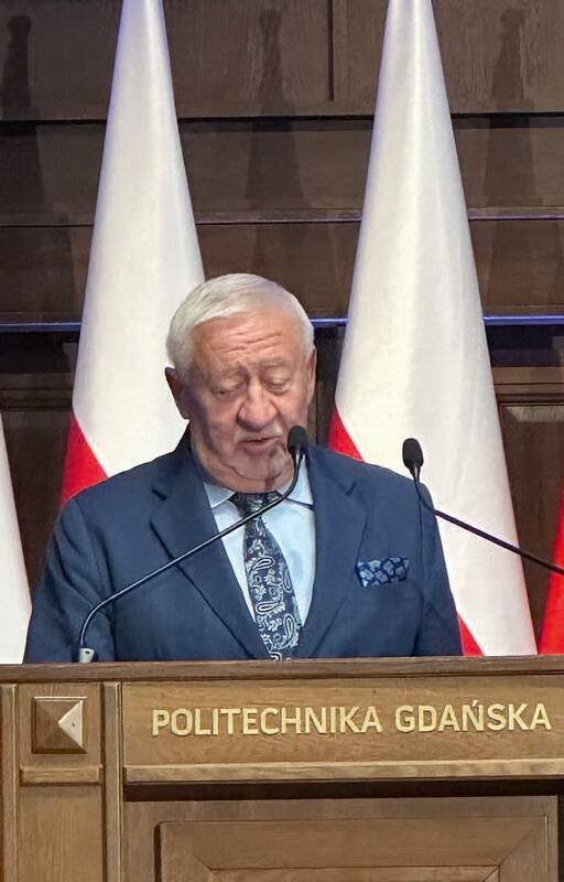 Głos zabrał Karol Nawrocki, prezydent RP, który podkreślił znaczenie Politechniki Gdańskiej dla rozwoju nauki, gospodarki i bezpieczeństwa kraju: „Historia jest mądrością, a przyszłość wyzwaniem” – przypomniał dewizę uczelni. „To motto jest mi szczególnie bliskie, bo sam jestem absolwentem Uniwersytetu Gdańskiego w zakresie nauk humanistycznych i historii, czyli dziedziny badającej przeszłość, a równocześnie ukończyłem także Politechnikę Gdańską, która otworzyła mnie na myślenie o przyszłości”.