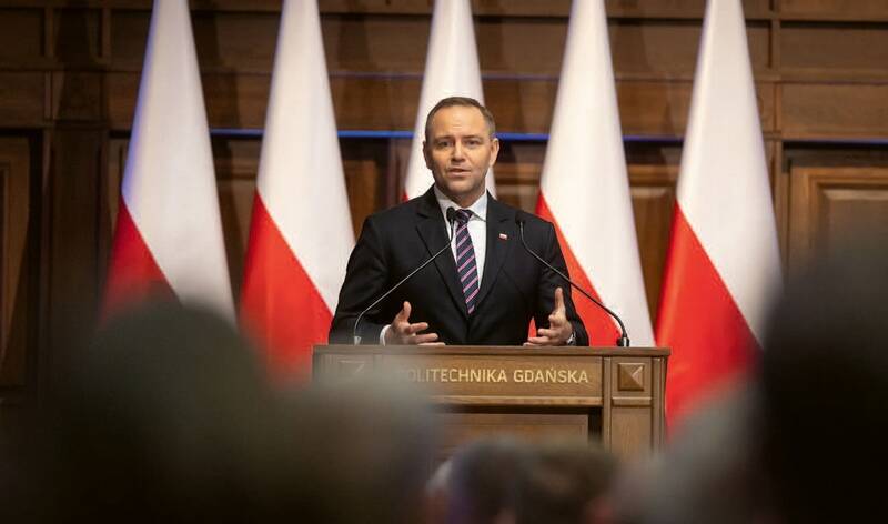 „Dlatego tak ważne są projekty, które powstają na Politechnice Gdańskiej, jak chociażby dron Głuptak, już dziś wykorzystywany przez Marynarkę Wojenną RP” – mówił. „Jako zwierzchnik Sił Zbrojnych deklaruję, że zrobię wszystko, by wspierać rozwój technologii obronnych XXI wieku. Właśnie w tym celu w Biurze Bezpieczeństwa Narodowego powstaje Departament Technologii Przełomowych.”