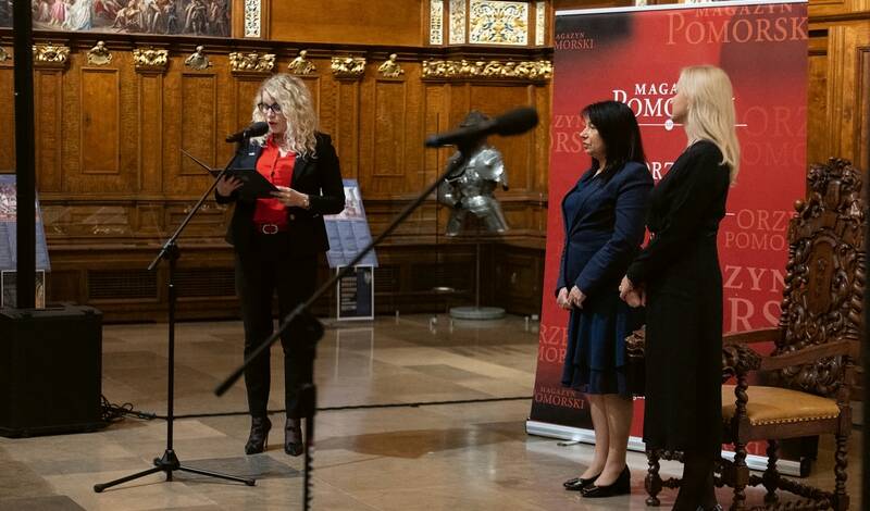 Od lewej: minister Agnieszka Majewska, Rzecznik Małych i Średnich Przedsiębiorców, Ewa Białogłowska – członkini, Małgorzata Wokacz-Zaborowska – dyrektorka Pomorskiej Izby Rzemieślniczej Małych i Średnich Przedsiębiorstw, Beata Rutkiewicz – wojewoda pomorska, i Jan Kozłowski – marszałek senior województwa pomorskiego.