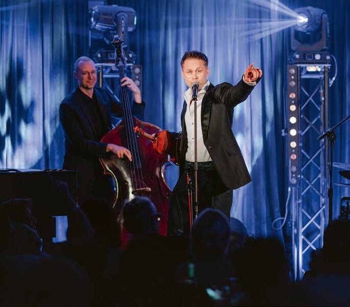 Punktualnie rozpoczęła się część muzyczna. Na scenie pojawił się Maciej Zakościelny z zespołem. Koncert opierał się na emocji i bezpośrednim kontakcie z publicznością. Światowe standardy i polskie klasyki zabrzmiały w świeżych aranżacjach – od ballad po swingową energię. Skrzypce, sceniczna swoboda i wyraźna charyzma budowały intensywność każdego utworu.