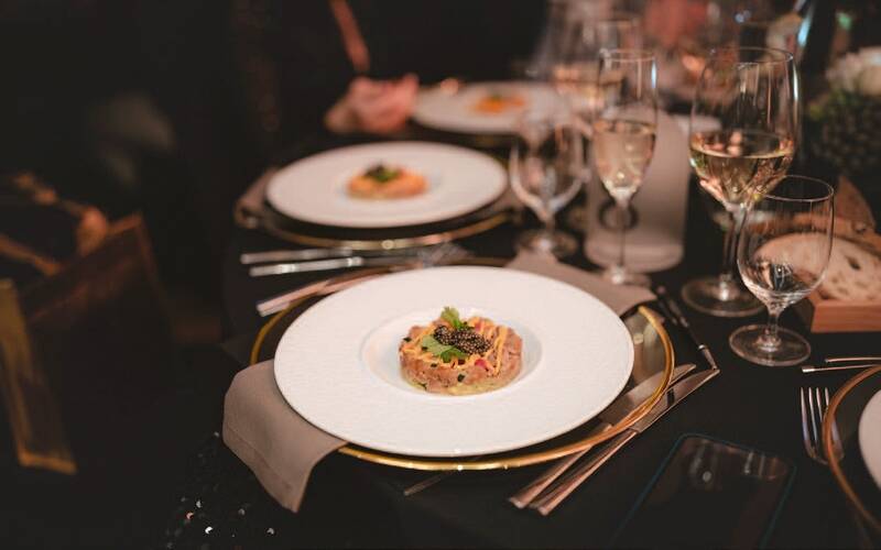 Wieczór rozpoczął powitalny drink, po którym goście mieli okazję spróbować kawioru Antonius. Menu bazowało na jakości składników i precyzji wykonania. Tatar z tuńczyka marynowanego w ponzu, prasowany policzek wołowy z purée z pieczonych kasztanów oraz autorska interpretacja jabłka z białej czekolady stworzyły spójną, dopracowaną opowieść smaków.